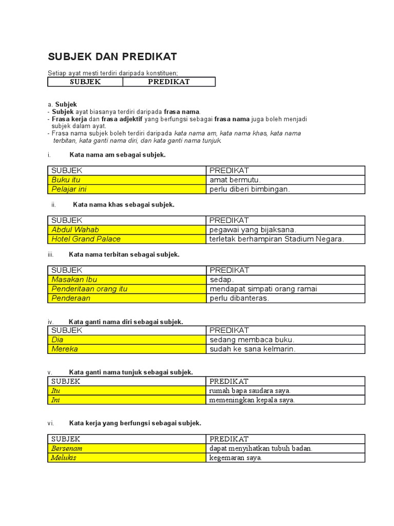 Penetapan atau pengingkaran antara subjek dan. Download PDF - Subjek Dan Predikat zpnxoryx3ynv. A Razak mengambil sebuah buku cerita.